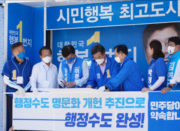 대평시장 유세를 통해 윤호중 위원장과 이춘희 시장 후보는 유세차에서 ‘행정수도 완성을 위한 공동정책 협약식’을 맺은 뒤 대평시장 안을 돌며 상인들에게 인사를 하고 대화를 나눴다.