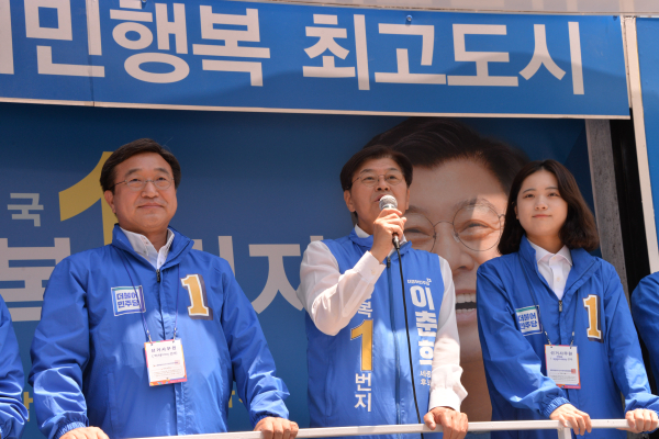 윤호중·박지현, 이춘희 후보 지원 유세...'헌법개정' 약속