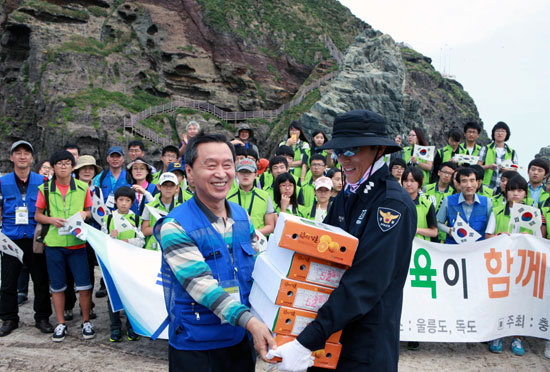 충남교육청(교육감 김종성) '독도수호 나라사랑 탐방대'는 일본의 독도 침탈 야욕에 대응하고 우리땅 독도를 수호하는 국토사랑 정신을 가다듬기 위해 지난 26일 독도에서 '독도수호 결의대회'를 가졌다.