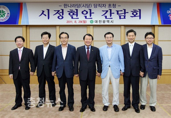 이어 정연상 사무처장은 "지역발전을 위해서는 여야가 없음에도 최근 대전시는 한나라당과의 소통이 부족하다"며 "간담회도 초청이라 돼 있지만 시당 측에서 먼저 요청했다"고 지적한 뒤 대전시와 대덕구의 갈등에 대해 "감정싸움으로 변질됐다. 보름 지나면 추석인데 큰집에서 먼저 나서서 작은집에 선물을 주는 모습을 보였으면 한다"고 강조했다.