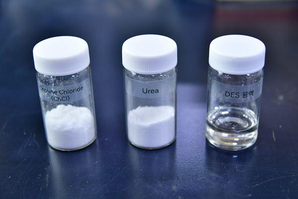 이를 통해 상온에서 간단하게 합성할 수 있는 DES(Deep eutectic solvent, 깊은공융용매) 용액을 제조했다. 제조한 DES 용액은 콜린클로라이드(Choline chloride, ChCl)와 요소(Urea)를 1:2의 몰비로 혼합해 녹는점이 12℃인 액체 상태의 복합체가 되는 대표적인 DES 물질로 알려져 있다.