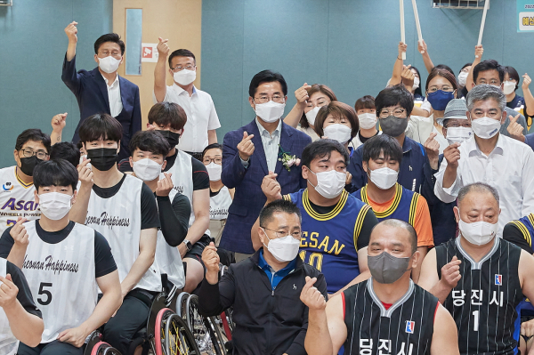 이어 박 당선인은 실옥동 아산장애인국민체육센터에서 개최된 ‘2022 충남장애인체육회장배 농구대회’에 참여해 행사개최를 축하하고 참가 선수들을 응원했다.