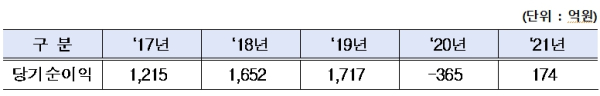 ’20년에는 코로나19 영향에 따른 고속철도 선로사용료 감소로 일시적으로 적자 전환되었으나, ‘21년에는 선로사용료 증가 및 자구노력으로 당기순이익 174억원을 실현하여 지속가능한 흑자경영의 초석을 마련하였다.