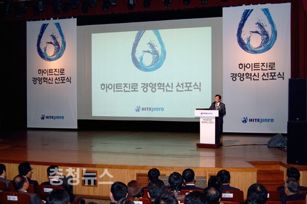 9월 새롭게 출범한 국내 최대 주류기업 ‘하이트진로(주)’(대표 이남수)가 통합을 기념해 5일 코엑스 그랜드 컨퍼런스룸에서 ‘경영혁신 선포식’을 개최하고, 통합 CI(Corporate Identity)와 새 슬로건을 공개했다.