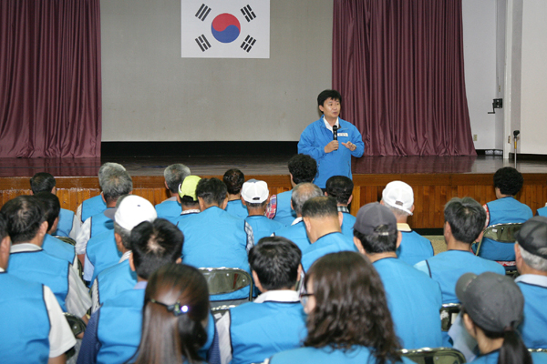 이날 교육은 일자리 참여자 상당수가 고령자, 미숙련자 등으로 작업시 자칫 발생할 수 있는 재난 재해를 사전에 예방하기 위한 것으로 매월 1회 이상씩 실시하게 되는데 지난달 1일에 이어 2번째 집합교육이다.