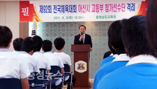 김종성 교육감은 지난 8일 아산지역을 시작으로 오는 20일 천안지역을 찾아간다. 서명범 부교육감은 오는 16일 논산지역 선수들을 격려하는 등 간부공무원들이 도내 전지역을 대상으로 필승격려를 다니고 있다.