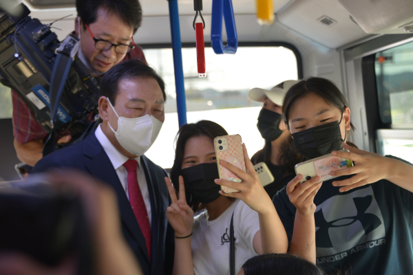 최 시장은 특정 배차 없이 시민들과 함께 버스를 기다리면서 버스에 올랐으며, 버스탑승객들과 함께 인사를 나누며 중앙공원까지 이동했다.
