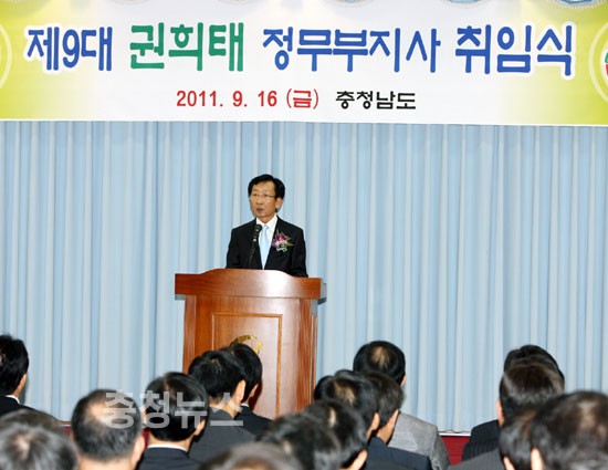 권희태 충남도 정무부지사가 16일 도청 대회의실에서 도청직원 200여명이 참석한 가운데 취임식을 갖고 공식 업무를 시작했다.