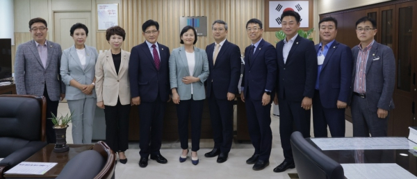 정도희 의장, 이종담 부의장과 각 상임위원장, 윤리특별위원장, 원내대표 등 10명은 이날 오후 대전지방법원 천안지원청을 시작으로 유관기관 방문에 나섰다.
