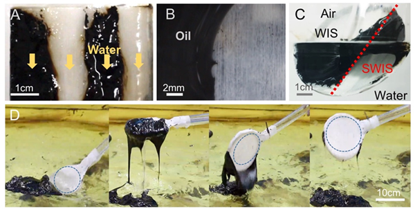 이렇게 만들어진 소재를 뜰채에 적용할 경우 물윤활(water lubricant) 원리에 의해 표면에서 기름이 쉽게 미끄러지고, 물은 잘 통과하는 현상을 확인할 수 있었다.