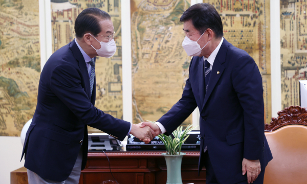 [충청뉴스 김거수 기자] 김진표 국회의장은 13일 국회 의장집무실에서 권영세 통일부 장관을 접견하고 “북한은 우리와 같은 민족으로 대화와 타협해 나가야 할 파트너”라고 말했다.