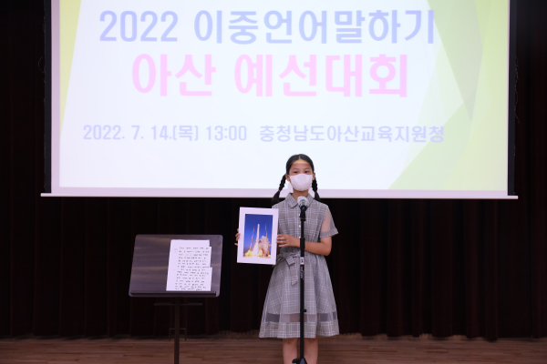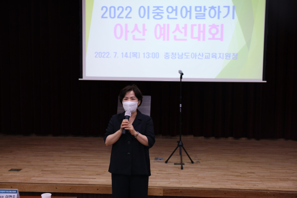 [충청뉴스 박동혁 기자] 충청남도아산교육지원청은 지난 14일 특수교육지원센터 대강당에서 다문화학생이 참여하는 '2022 이중언어말하기 아산 예선대회'를 개최했다.