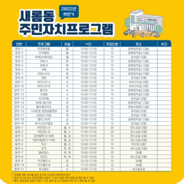 - 새롬동 주민자치회, 22년 하반기 주민자치프로그램 30개 강좌