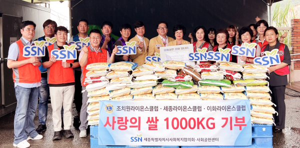 [충청뉴스 최형순 기자] 18일 조치원라이온스클럽(회장 최문섭), 세종라이온스클럽(회장 오가영), 이화라이온스클럽(회장 송영숙)은 세종특별자치시사회복지협의회(회장 김부유, 이하 ‘협의회’) 사회공헌센터를 방문해 취약계층을 위한 쌀 1000kg을 기부했다.