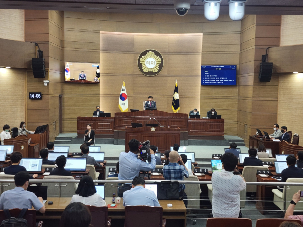 개회식 후 제1차 본회의에서 엄소영 의원이 ‘대각선 횡단보도 확대 도입’에 관한 5분 발언을 진행했고, △기획경제국 △행정안전국 △복지문화국 △농업환경국 △교통건설국과 양 구청 및 3개 사업본부에 대한 2022년도 하반기 주요업무에 대한 보고가 이어졌다.