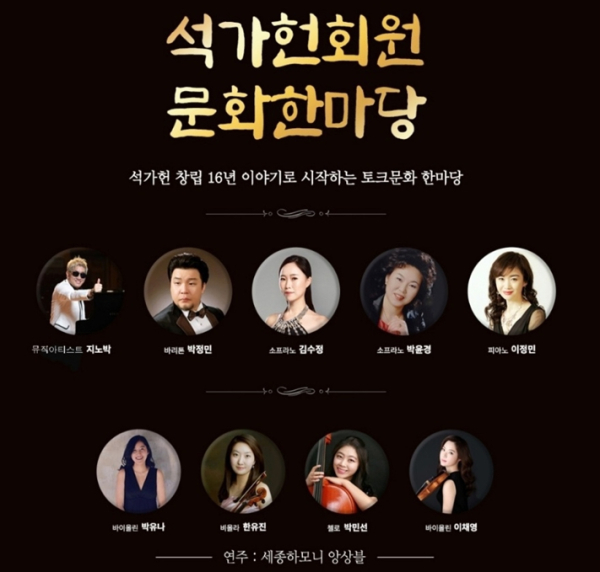 제1부 행사는 석가헌 세종의 새바람 주제로 열정과 애수가 깃든 집시음악과 기품있는 살롱 음악을 세종하모니앙상불 이채영, 박유나, 한유진, 박민선 연주자의 연주로 먼저 문을 열었다.