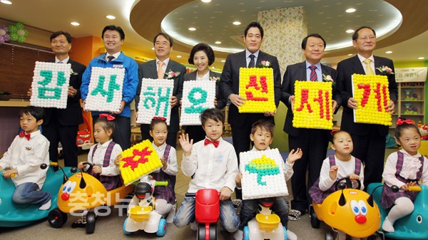 염홍철 대전시장과 어린이재단 이제훈 회장, 신세계그룹 정용진 부회장이 참석한 가운데 27일 비래동에 위치한 대전종합사회복지관에서 신세계이마트희망장난감도서관 대전관 개관식을 가졌다.