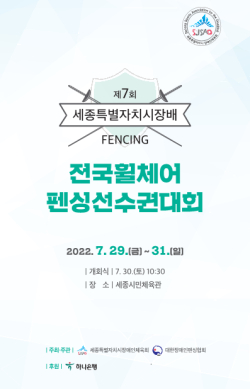 [충청뉴스 최형순 기자] 코로나19로 개최하지 못했던 ‘제7회 세종시장배 전국휠체어펜싱선수권대회’가 오는 29일부터 31일까지 사흘간 세종시민체육관에서 3년만에 개최된다.