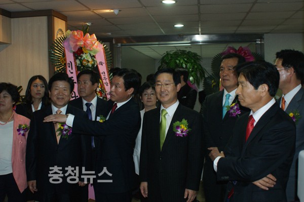이어진 격려사에서 정세균 前 대표는 "이 중구지역위원장은 변화를 추구하는 능력있고, 깨끗한 사람이니 내년총선에서 승리하리라 본다”고 격려했으며 김정길 前 행자부장관은 "때로는 민주당과, 때로는 한나라당과 함께하는 아리까리한 선진당을 또 뽑겠냐?”고 강하게 비판 했다.