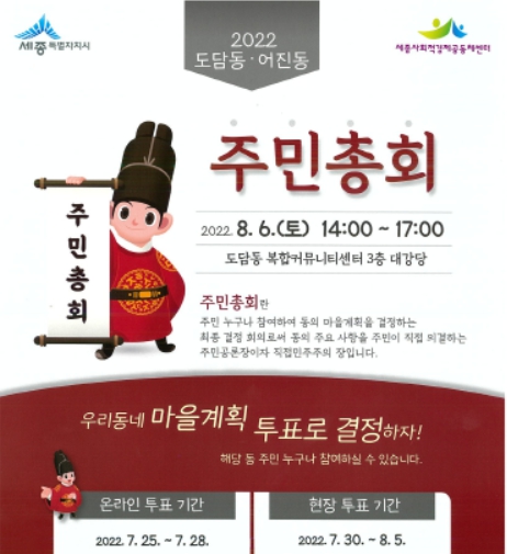 [충청뉴스 최형순 기자] 세종특별자치시 도담동 주민자치회(회장 이기준)가 도담동-어진동 주민총회 개최를 앞두고 지난 30일부터 주민총회 현장 사전투표를 시작했다.