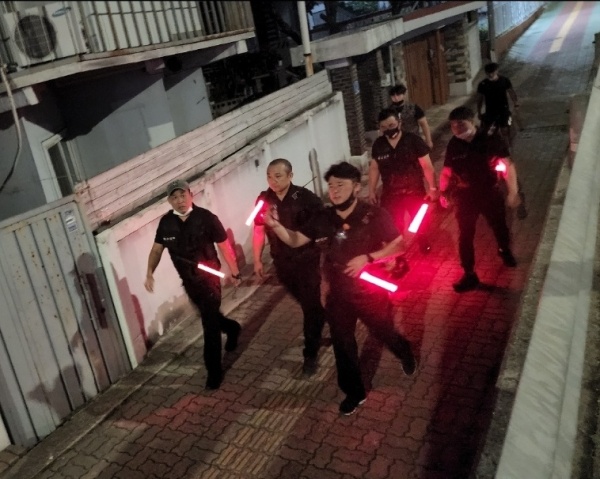 8명의 회원들은 지난 28일 우범지역을 순찰하며 비상벨 점검을 하고, 거리에 있는 만취자들의 귀가 조치를 도왔다.