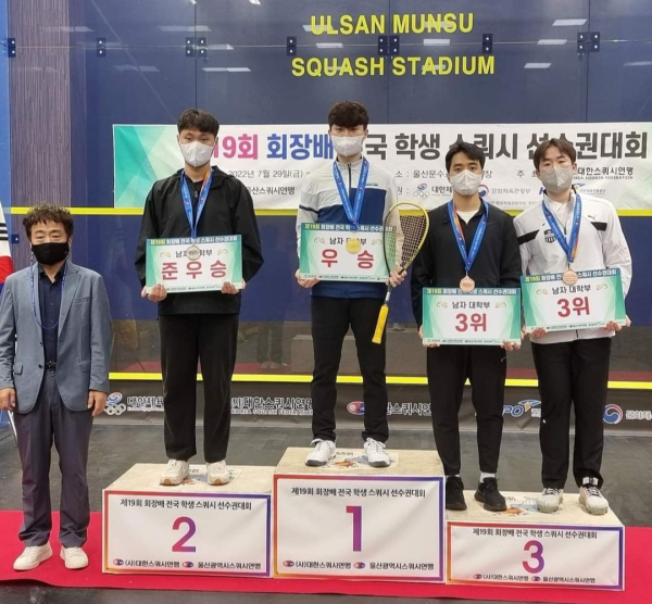 1일 충청남도스쿼시연맹에 따르면, 지난달 29~31일까지 울산 문수스쿼시경기장에서 열린 이번 대회에서 남자 대학부에 출전한 박성찬(중앙대)이 우승을 차지했다.