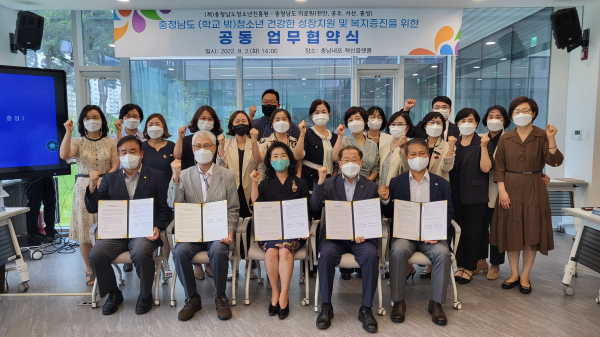[충청뉴스 박동혁 기자] 충청남도청소년진흥원은 도내 (학교 밖)청소년의 건강한 성장지원 및 복지증진을 위해 도내 의료원 4곳(천안·공주·서산·홍성의료원)과 2일 충남내포 혁신플랫폼에서 공동 업무협약식을 체결했다.