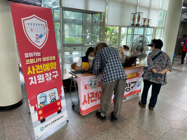 천안시 코로나19 예방접종 대응추진단은 지난달 26일부터 28일까지 아우내은빛복지관, 천안시종합노인복지관, 천안시종합사회복지관에서 예약지원 창구를 운영해 온라인 등으로 예약이 어려운 어르신을 대상으로 사전예약 기회를 제공해 60세 이상 어르신들로부터 큰 호응을 얻었다.