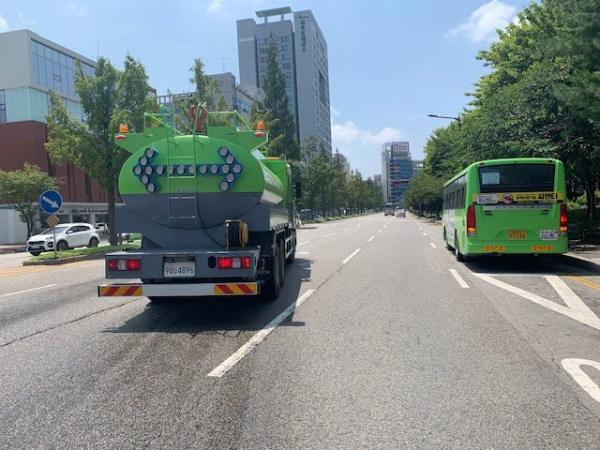 열섬현상 완화대책으로는 양 구청 건설과 살수차 2대를 동원해 주요 간선도로와 폭염 취약 구간 도로의 열기를 낮추고 있다.
