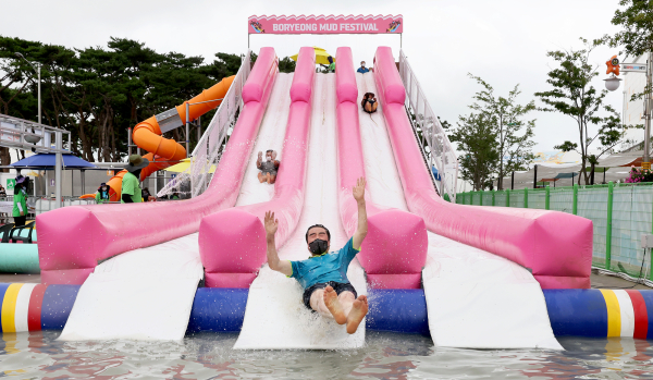 [충청뉴스=보령 조홍기 기자] 김동일 보령시장이 2022보령해양머드박람회의 성공적 개최를 기원하며 머드슬라이딩 퍼포먼스를 선보였다.
