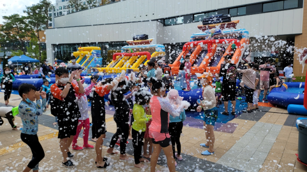 버블거품존, 분수터널 등을 설치해 주민들의 볼거리를 더하고, 팀별 물총놀이, 물풍선 던지기 등 이벤트도 함께 진행해 가족·이웃들에게 즐거움을 선사했다.
