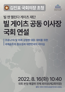 [충청뉴스 김거수 기자] 김진표 국회의장이 오는 16일 마이크로소프트(MS) 창업자이자 빌 앤 멜린다 게이츠 재단 공동이사장인 빌 게이츠(Bill Gates)를 만나 국제보건의료 분야 협력 방안을 논의한다.