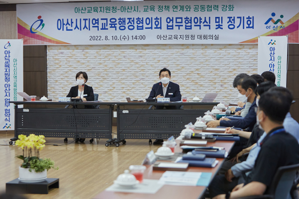 [충청뉴스 박동혁 기자] 충남 아산시는 10일 아산교육지원청과 아산시지역교육행정협의회 구성과 공동협력을 위한 업무협약을 체결했다.