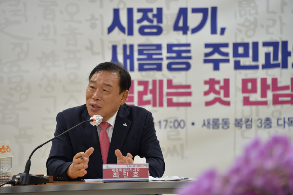 [충청뉴스 최형순 기자] 최민호 세종시장은 11일 오후 5시 새롬동 복컴 3층 다목적회의실에서 김효숙 세종시의원과 시민, 시 국장들이 참석한 가운데 김산옥 동장의 주요 업무보고을 받았다.