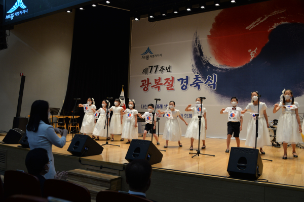 이어 어린이합창단은 조준영, 권지율의 애국가 제창, 광복절 노래를 제창해 눈길을 끌었다.