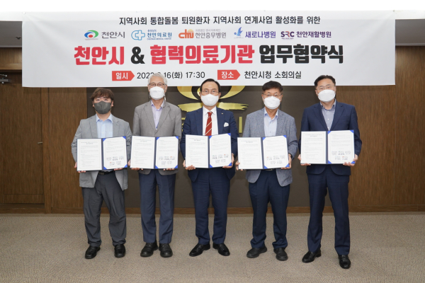 [충청뉴스 박동혁 기자] 충남 천안시는 지난 16일 천안의료원, 천안충무병원, 새로나병원, 천안재활병원 등 관내 4개 의료기관과 ‘퇴원환자 지역사회 연계사업’ 업무협약을 체결했다.