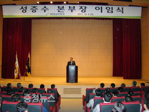 한국토지주택공사 대전충남지역본부는 지난 6일 상임이사(녹색도시본부장)에 임명된 성증수 대전충남지역본부장의 이임식을 가졌다.