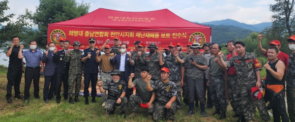 [충청뉴스 박동혁 기자] 해병대 천안전우회는 20일 천안시 목천읍 용연저수지에서 재난재해용 보트 진수식을 열었다.