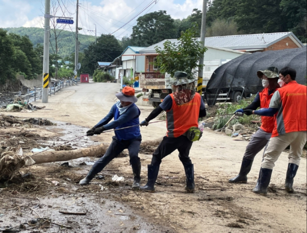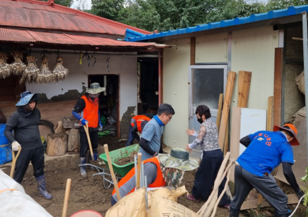이번 복구작업은 농협 대전지역본부와 힘을 모아 가옥 내 토사제거, 고추밭 물골작업, 침수 비닐하우스 제거, 하천 인근 정화 등 피해지역 주민들의 신속한 일상생활 복귀를 위한 다양한 활동을 펼쳤다.