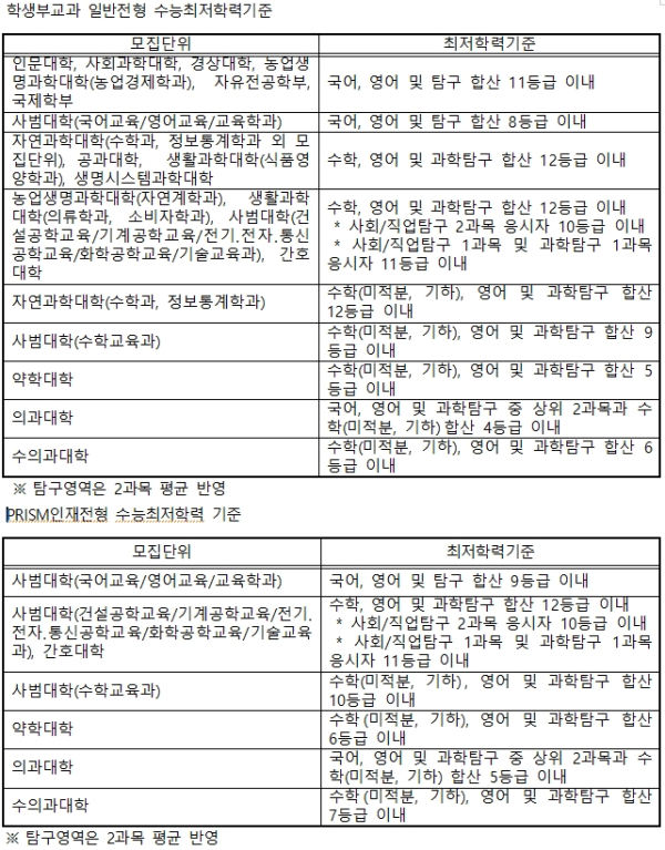 수능최저기준, 선발비율 등 일부 문턱 낮춰