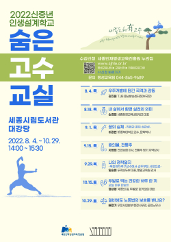 수강 신청은 세종인재평생교육진흥원 누리집(www.sjhle.or.kr)에서 무료로 신청할 수 있으며, 강연에 대한 자세한 사항은 세종인재평생교육진흥원 평생교육팀(☎044-865-9689)으로 문의하면 된다.