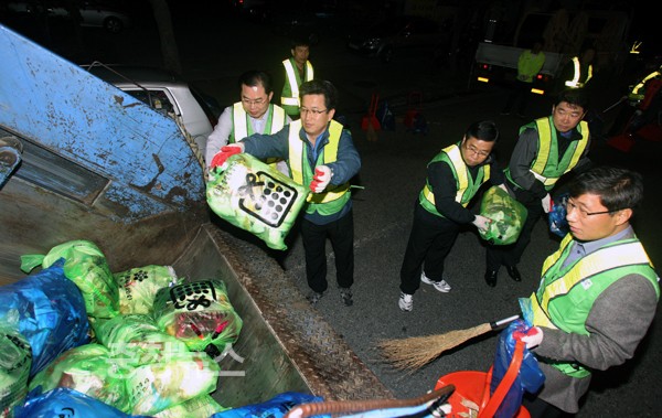 이날 환경미화원 체험은 깨끗한 거리 환경을 위해 새벽부터 일하는 현장 직원들의 어려움을 간부들이 함께 일하며 파악하기 위해 마련됐으며 평소 관광특구 지역으로 쓰레기 배출양이 많고 깨끗한 거리환경이 요구되는 봉명동 호텔 주변 골목길에서 실시됐다.