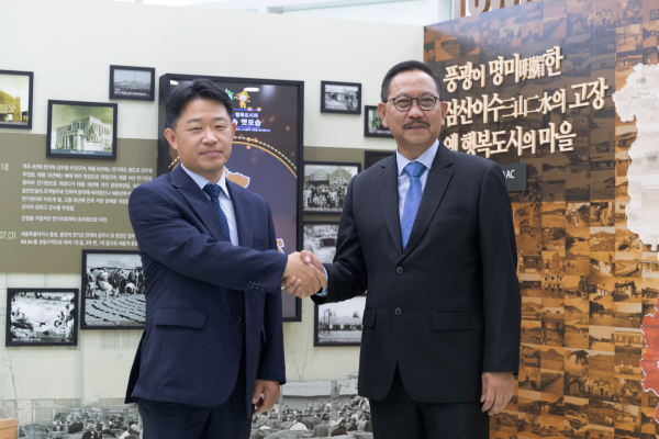 [충청뉴스 최형순 기자] 최임락 행정중심복합도시건설청 차장(사진 왼쪽)은 29일 인도네시아 신수도 이전을 위한 모델도시로 세종을 방문한 신수도청 밤방 수산토노 장관(사진 오른쪽)을 맞이하여 행복도시를 안내하고 신수도 이전 협력방안을 논의하였다.