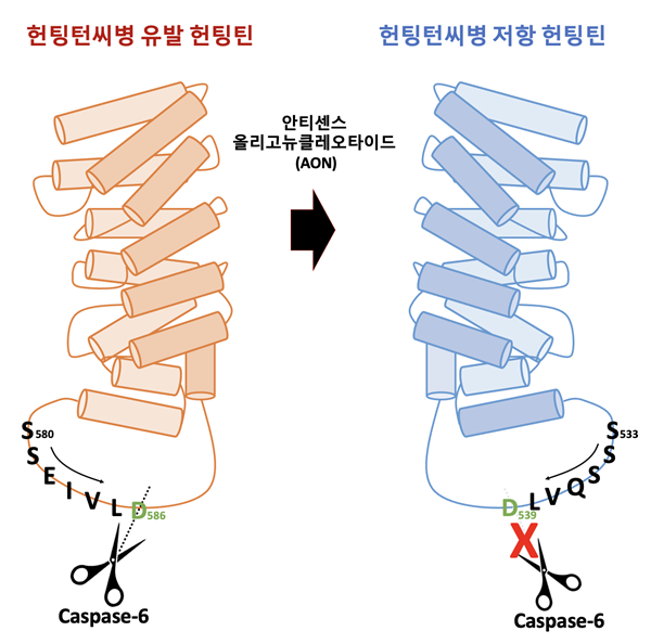 연구팀은 알엔에이(RNA)의 일종인 ‘안티센스올리고뉴클레오타이드’를 이용해 생성이 유도된 ‘헌팅틴 델타 12’의 형태가 헌팅턴병을 유발하는 주요 원인인 단백질 아미노산 말단부위로 인해 절단되지 않으면서도 헌팅틴 단백질 고유의 기능을 유지한다는 사실 밝혔다.