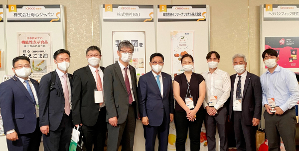 한편, 김 사장은 한국 농수산식품의 일본 수출시장 확대를 위해 9월 1일부터 이틀간 진행하는 ‘2022 일본 K-Food 페어’ 수출상담회를 참관한 뒤, (사)재일한국농식품연합회(회장 김규환)와 한국김치수입협의회(회장 하기석)에 한국 농수산식품 수출 확대에 기여한 공로로 감사패를 전달했다.