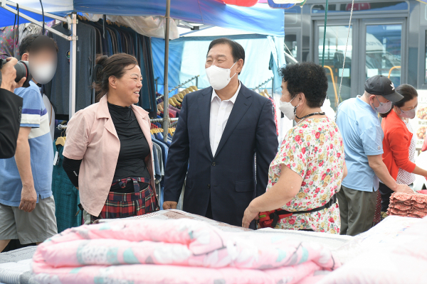 이날 최민호 시장은 판매되는 제수용품, 과일 등을 확인하고, 물가상승에 따른 경기침체 등으로 어려움을 겪고 있는 상인들의 애로사항을 직접 경청하고 시 차원의 지원 방안을 논의했다.