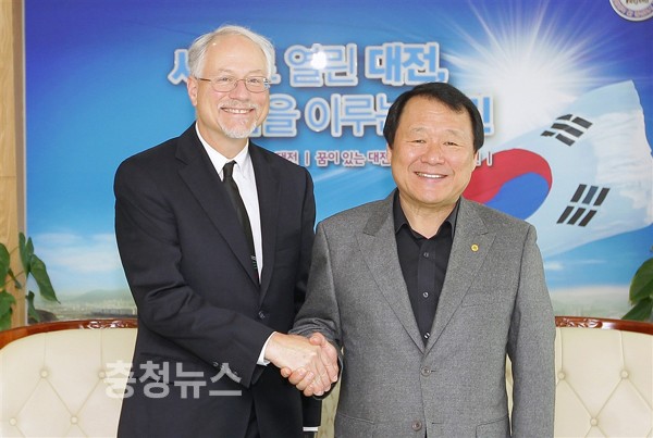 대전시(시장 염홍철)의 자매도시인 미국 시애틀 리차드 칸린(Richard Conlin) 시의회의장이 양 도시간의 우호를 다지기 위해 17일 오전 대전시를 방문했다.