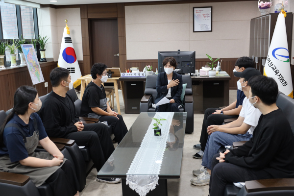 [충청뉴스 박동혁 기자] 충청남도아산교육지원청은 5일 미화, 경비, 희망일자리, 사회복무요원 직원들과 소통의 장을 마련하고 격려물품을 전달했다.