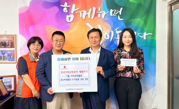 [충청뉴스 최형순 기자] 한국지역난방공사 세종지사(지사장 류시원, 이하 ‘난방공사’)가 세종특별자치시사회복지협의회(회장 김부유, 이하 ‘협의회’) 사회공헌센터를 방문해 추석 명절을 맞이하여 지역 내 복지소외계층에 온누리상품권 200만원을 기부해 훈훈한 감동을 주고있다.