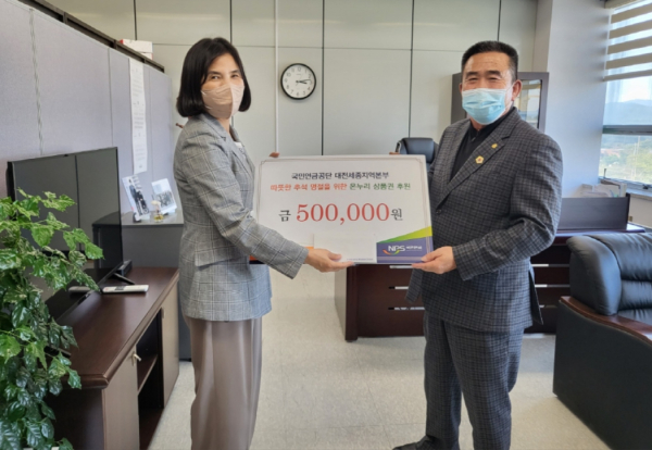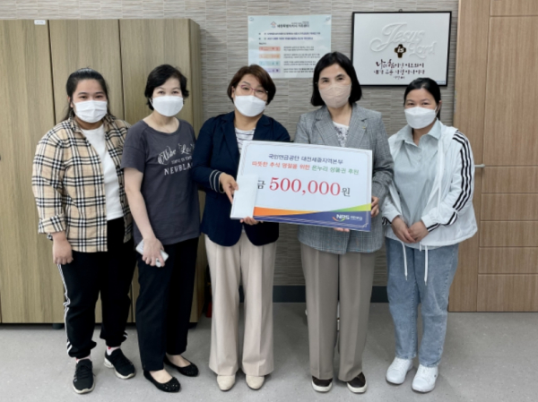 [충청뉴스 최형순 기자] 국민연금공단 대전세종지역본부(본부장 이여규)는 7일 민족 대명절인 추석을 앞두고 세종시에 위치한 사회복지기관 3곳을 방문하여 임직원후원금 전달 행사를 진행했다.